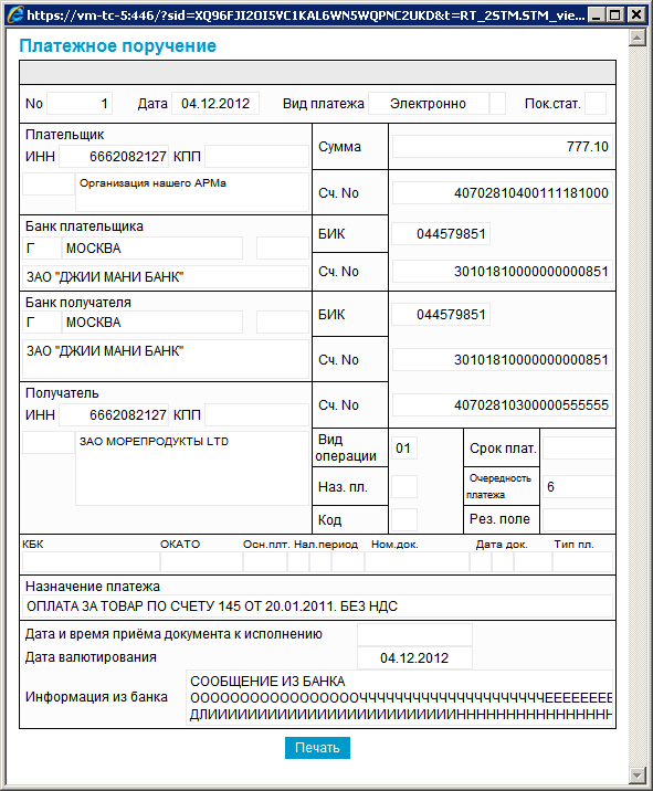 Выполните действия в соответствии с инстр. «Получение квитанции из банка».